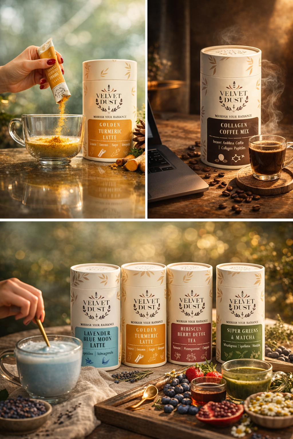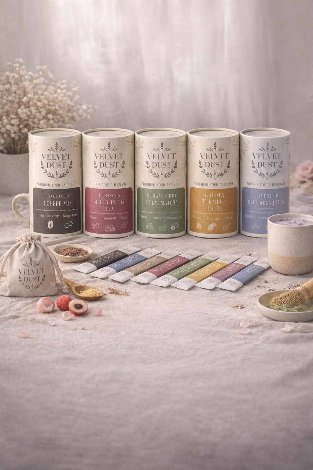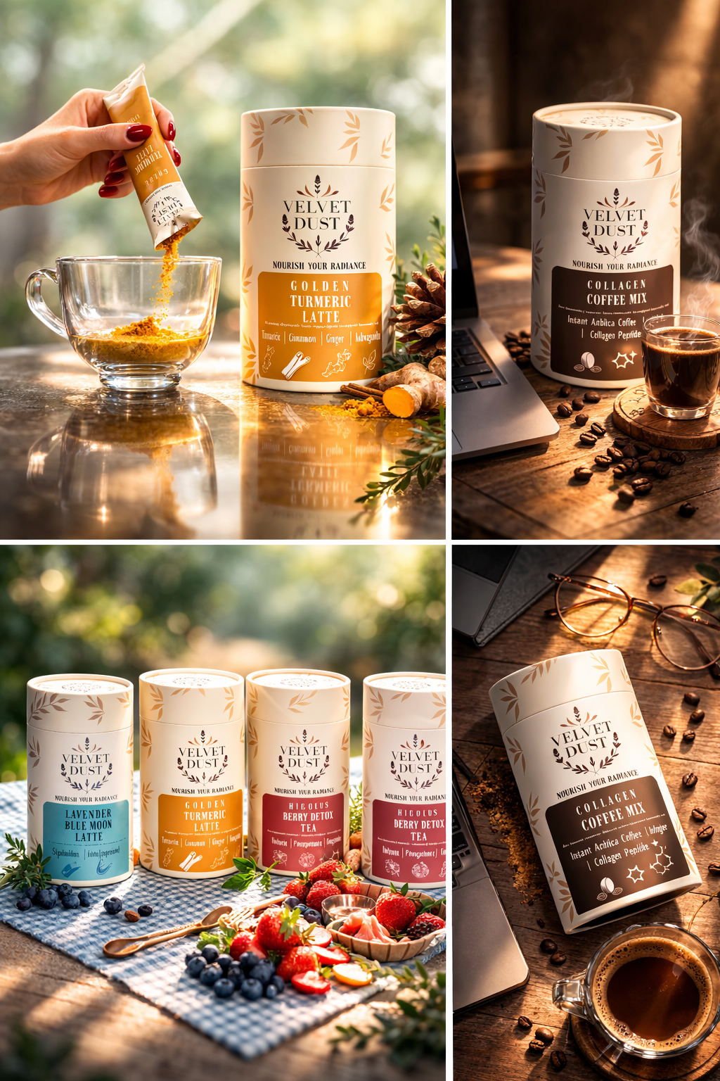 Velvet Dust brings together premium botanicals, thoughtful formulation, and elegant design, transforming everyday drinks into moments of calm intention